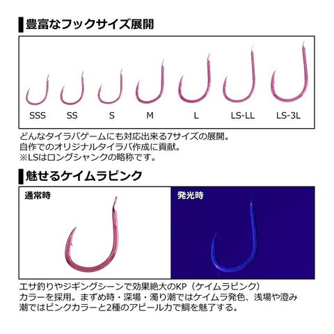 エサ釣りやジギングシーンで効果絶大のKP(ケイムラピンク) カラーを採用。