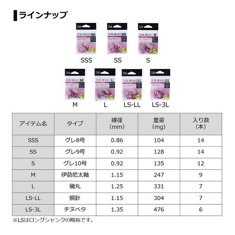 どんなタイラバゲームにも対応出来る7サイズの展開。