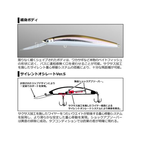 限りなく細くシェイプされたボディは、ワカサギなど本物のベイトフィッシュの形状に近く、
