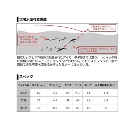 1つのルアーで異なるレンジを攻略できるミノーというコンセプトに基づき、