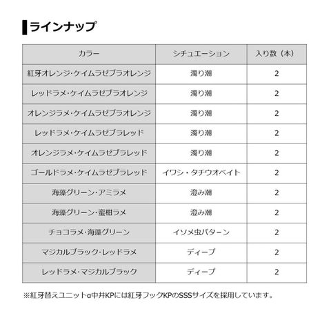 ※紅牙替えユニットα中井KPには紅牙フックKPのSSSサイズを採用しています。