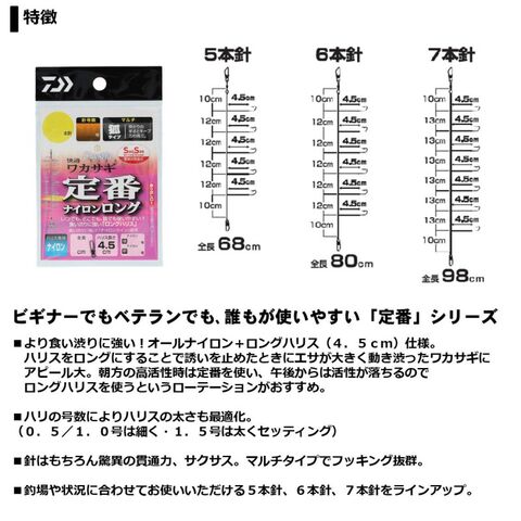 ■釣場や状況に合わせてお使いいただける5本針、6本針、7本針をラインアップ。