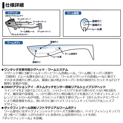 ワーム部分にはダックフィンシャッドシリーズで実績の高い、ベイトフィッシュそっくり