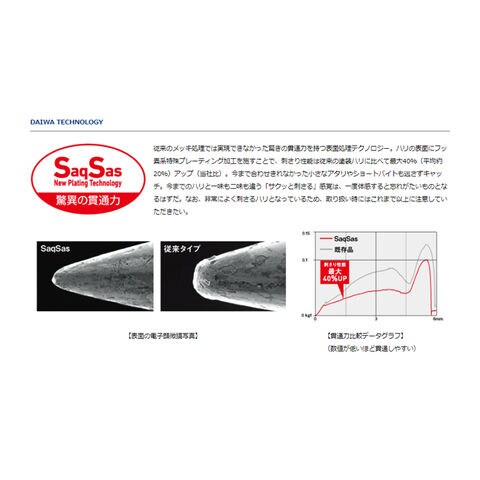 刺さり性能は従来の塗装ハリに比べて最大40%(平均約20%)アップ(当社比)。