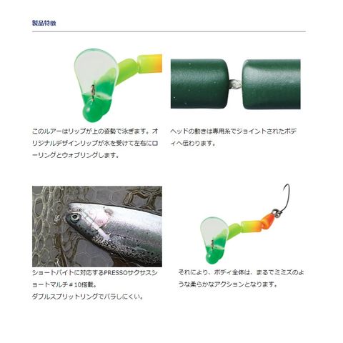 一口サイズのミミズアクションルアー 小型のトラウトにも対応!