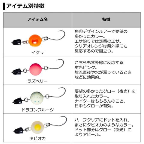 ●サイズは小の直径10mm/1.5gと中の12mm/2.1g。