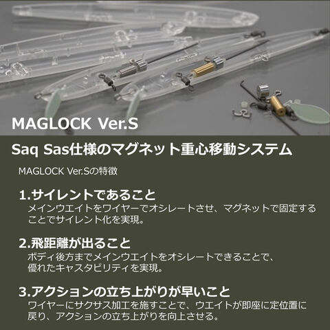 細いミノーを飛ばすため、重心移動を搭載し、サイレント化を達成するため、MAGLOCK Ver.Sを採用した。