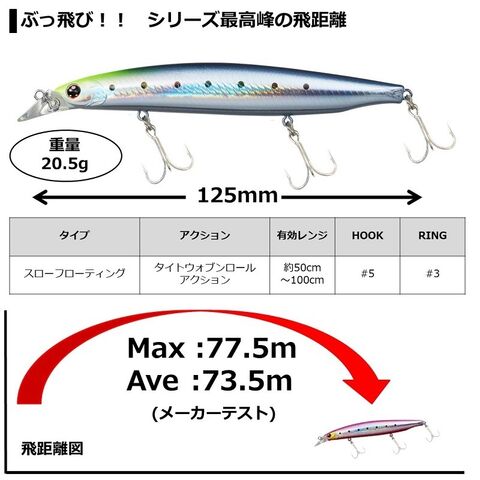 (参考:SLZ-バーティス120F飛距離=Max71m、Ave66.5m)