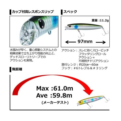 幅狭スリムボディで、ヨタヨタと弱った魚の様なアクションを発生。