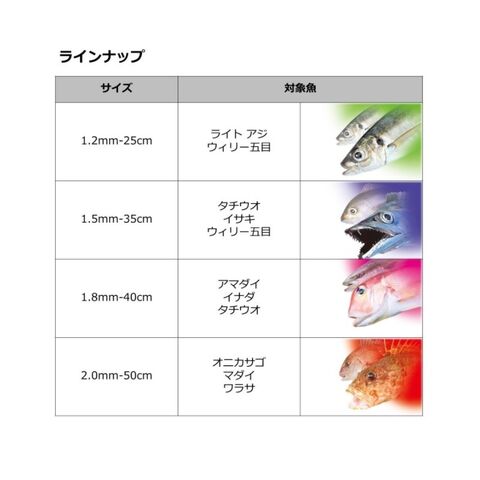 最適な天秤線径・全長がターゲット別にわかりやすく表記しています。