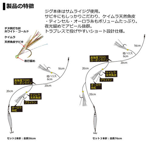 小中型青物をはじめ、あらゆるターゲットが狙える、信頼のサムライブランドジギングサビキ。