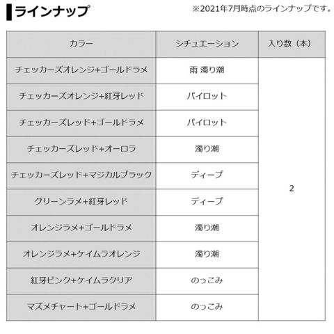 ・「雨・濁り潮」「パイロット」「濁り潮」「ディープ」「のっこみ」の5つの推奨シュチエーション