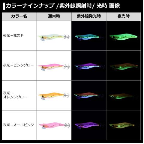 夜釣りがメインとなるライトエギング。必然的にローライトコンディションでの釣りとなるため夜光系カラーが圧倒的に有利。