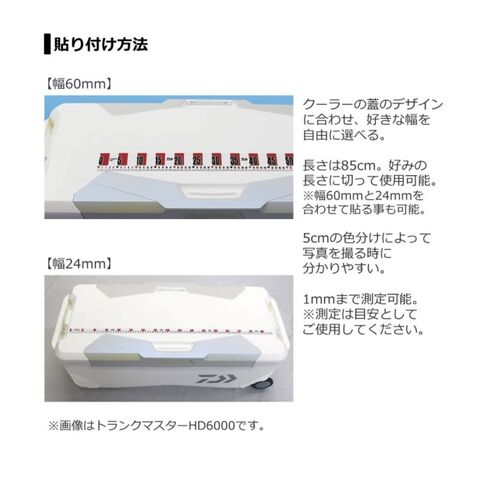 また大型サイズのクーラーに貼る場合、2枚を並べれば最大88cmまで計ることが可能。