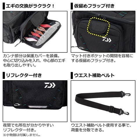 フロントポケットを取り外してそれぞれをバッグ、エギホルダーとして使用することも可能。