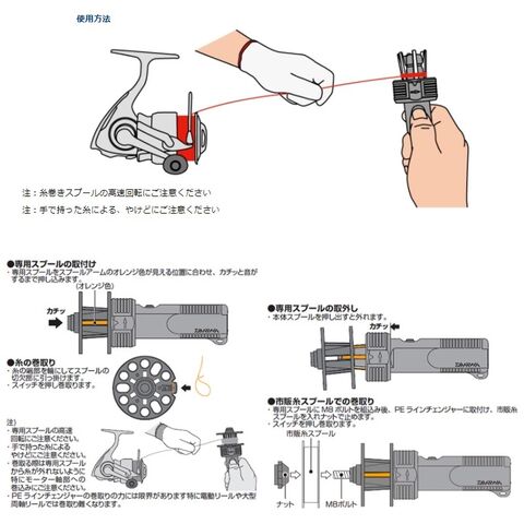 ※ナイロン細糸に使用すると、糸の収縮が強く巻きとった糸が外れなくなるのでご使用にならないでください。