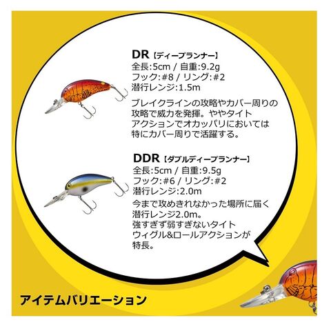 日本全国、バスプロからビギナーの方まで幅広く愛用されている国民的クランクベイト。