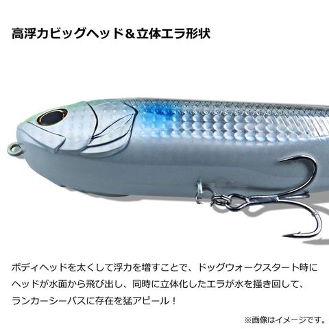 ボディヘッドを太くして浮力を増すことで、ドッグウォークスタート時にヘッドが水面から飛び出し、