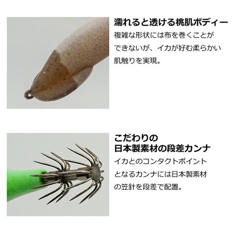 イカが好む布ライクな肌触りに加え、濡れると下地が透けて浮き出てくる。