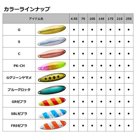 10g、14g、17gには、サクラマスを中心としたビッグトラウトを狙うアングラーを対象にボトムトレースでも根掛かりしにくいフォルム、