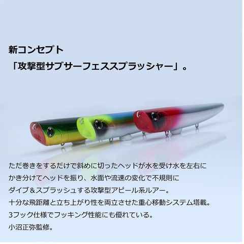 ただ巻きだけで魚を寄せる3Dアクション。新コンセプト「攻撃型サブサーフェススプラッシャー」。