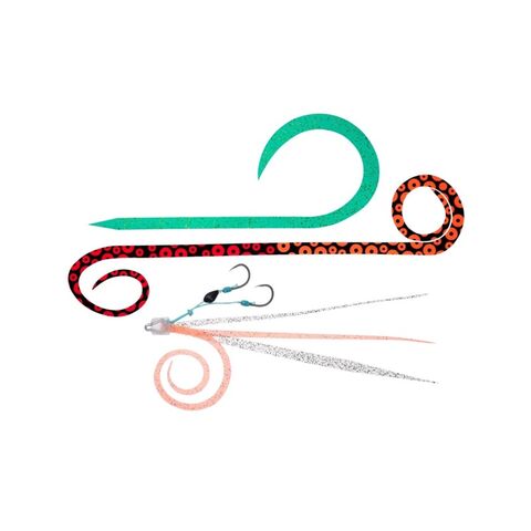 紅牙シリコンネクタイ中井チューンSTRスリム、中井チューンSTCスリム、シングルカーリーR、ツインカーリーRが各1本ずつ入っているため、替えユニットの定番である中井チューンを含む様々な組み合わせが可能。