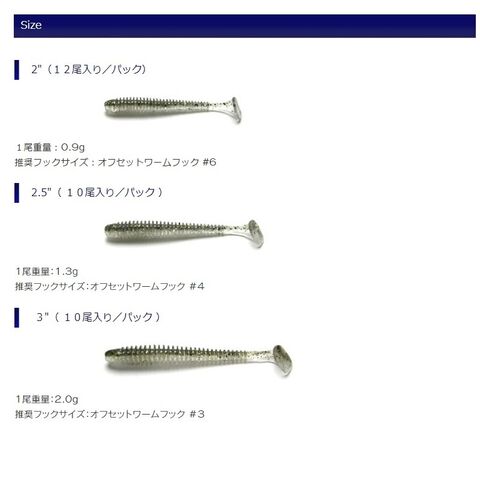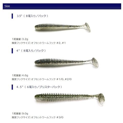2インチ-#4フック、2.5インチ-#3フック