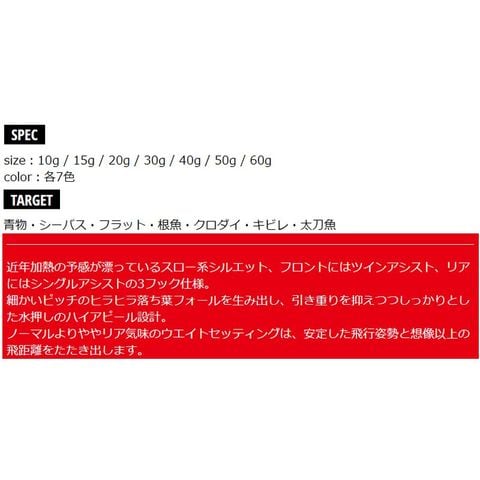 ジグパラ「ショアスロー」に新サイズ、10g、15gが登場!