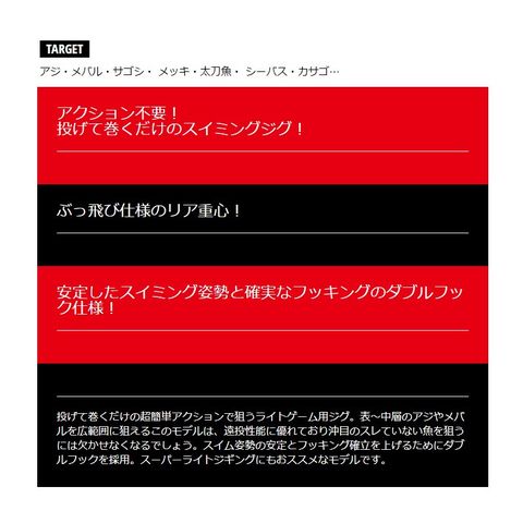 軽量ジグをより遠投させたい時にオススメなリア重心のスイムタイプ登場!