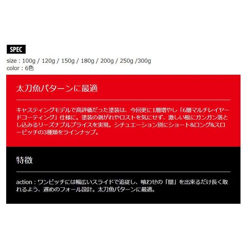 バーチカル ロングモデルにビックサイズ250g&300gが追加され全7サイズに!