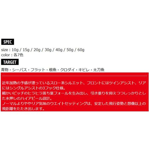 ジグパラ「ショアスロー」に新サイズ、10g、15gが登場!