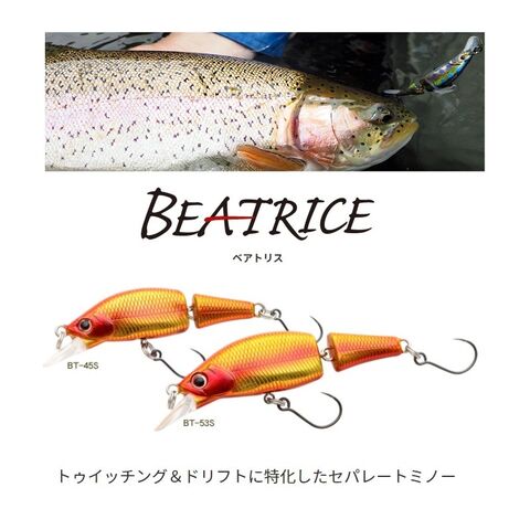 前後にセパレートしたボディが特徴のトゥイッチイング&ドリフトシンキングミノーベアトリス。
