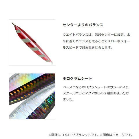 フォール時は横姿勢となることで、やや遅めのスピードとなり、じっくりとターゲットにアピールします。