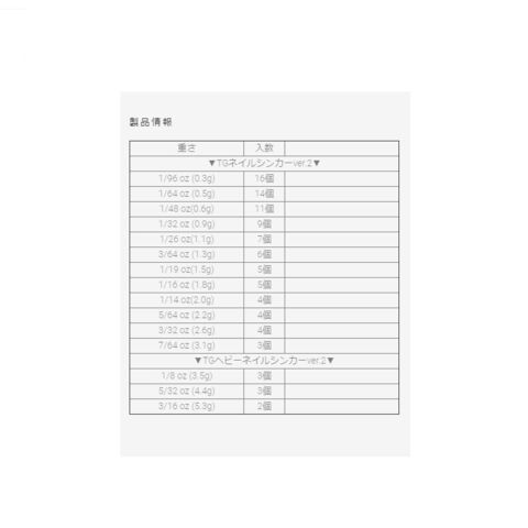 ・商品名:TGネイルシンカーVer.2 3/64oz (1.3g)