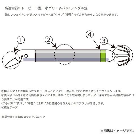 3.「小バリ」「多バリ」「単笠」によりイカに警戒心を与えないのでアタリが倍増します。
