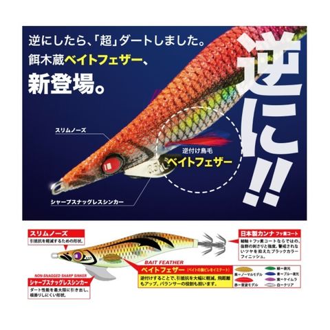 餌木博士こと薗田氏デザインの逆付け鳥毛の餌木蔵「ベイトフェザー」シリーズ登場。