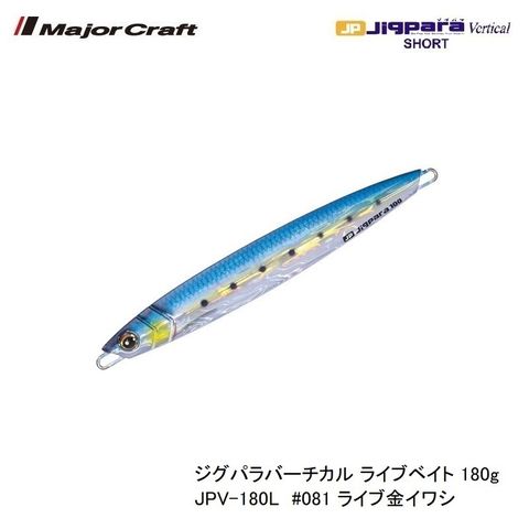メジャークラフト ジグパラバーチカル ライブベイト 180g JPV-180L #081 ライブ金イワシ