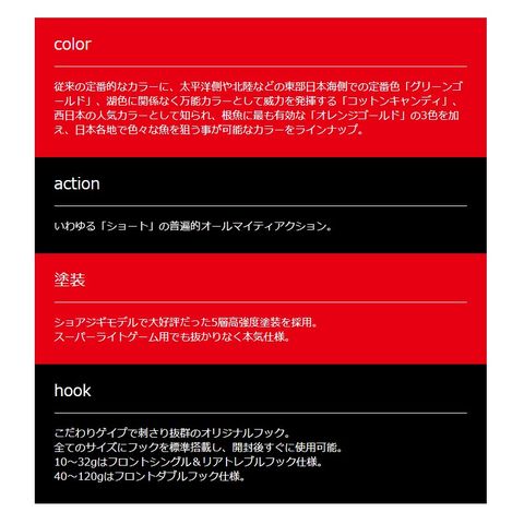 日本各地で色々な魚を狙う事が可能なカラーをラインナップ。