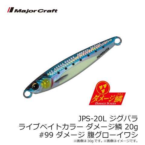 メジャークラフト JPS-20L ジグパラ ライブベイトカラー ダメージ鱗 20g #099 ダメージ腹グローイワシ