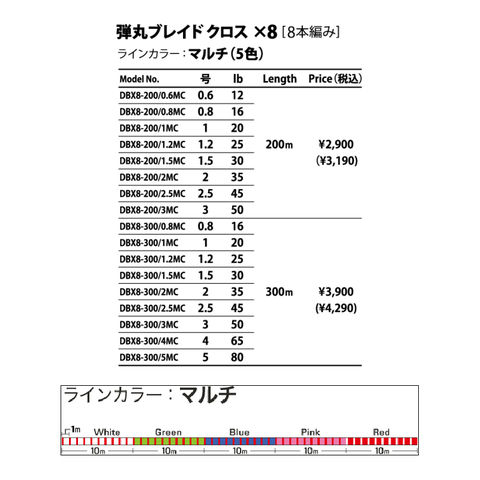 メジャークラフト 弾丸ブレイドX X8 200m DBX8-200/0.6MC マルチカラー