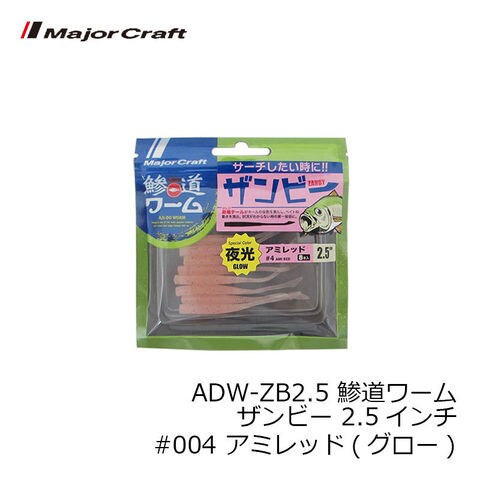 メジャークラフト ADW-ZB2.5 鯵道ワーム ザンビー 2.5インチ #004 アミレッド(グロー)