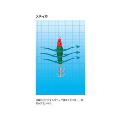 流線形状ミニマムボディが潮流を受け流し、姿勢を安定させる。