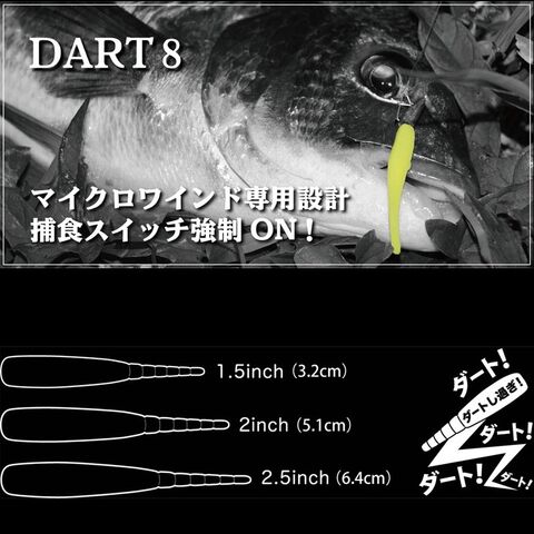 ダートゲーム用に設計されたジグヘッドと組み合わせることで特に効果を発揮し、