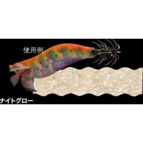 エギ腹専用カラー「ナイトグロー」。夜釣りだけでなく日中の深場や影等を攻める時、特に有効。明るい所から暗い所へエギが入った時にイカのスイッチが入る。第一回重見アワビダービー優勝者使用カラー。