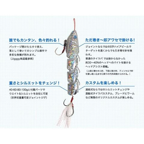 また、連結式ならではのシルエットチェンジや遊動式タイラバカスタム、ブレードにワームなど無限のオリジナルカスタムが楽しめます。