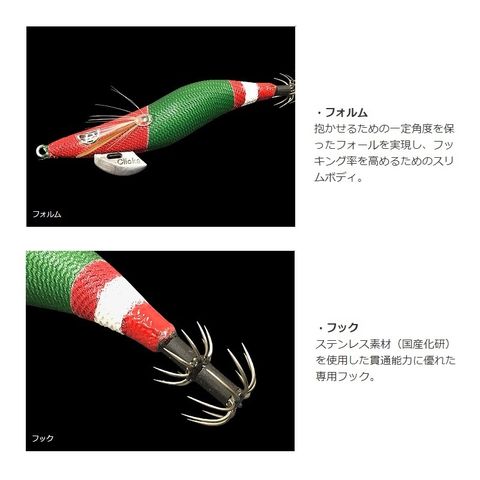 抱かせるための一定角度を保ったフォールを実現し、フッキング率を高めるためのスリムボディ。