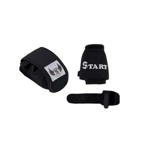 厚みのあるネオプレーン素材にシルバーのSTARTロゴプリントとSTART羽根ロゴのネームタグをあしらったSTARTオリジナルのリールプロテクターです。