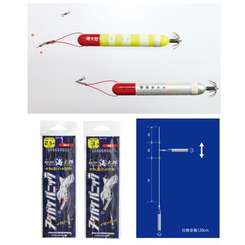 ?上下に鉛スッテ(別売)をセットすることで、従来の お助け仕掛と異なり、小型のスッテを深場に送り込むことが可能です。