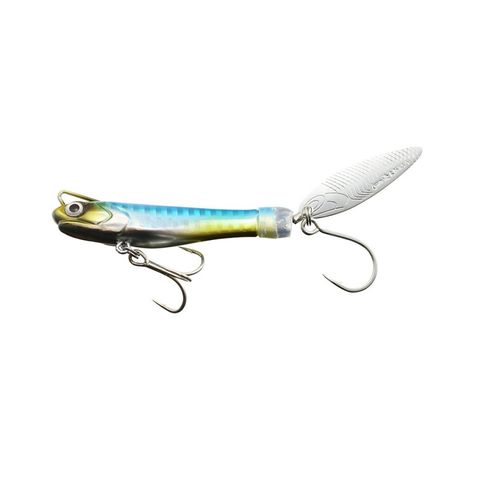カタクチイワシをデザインベースにしたボディとブレードを持つテールスピンジグ。低重心ワイドボディは圧倒的な飛距離を生むだけでなく、フック絡みを軽減させます。