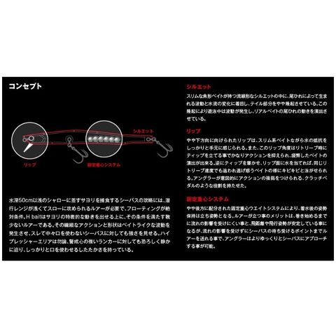スリムな魚形ベイトが持つ流線形なシルエットの中に、
